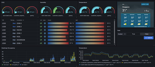 Indoor temperatures are displayed on our IoT dashboard to raise awareness and encourage shared accountability across our teams and spaces.
