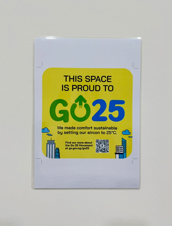 The Go 25 movement, co-organised by the Singapore Green Building Council (SGBC) with the Ministry of Sustainability and the Environment (MSE), and supported by the National Environment Agency (NEA) as well as the Building and Construction Authority (BCA), promotes optimal cooling practices starting with setting indoor temperatures to 25°C — the sweet spot for comfort and sustainability. It’s more than just a number; it’s a call to action for building owners, facility managers, and businesses to lead the way in creating a smarter, more sustainable Singapore.